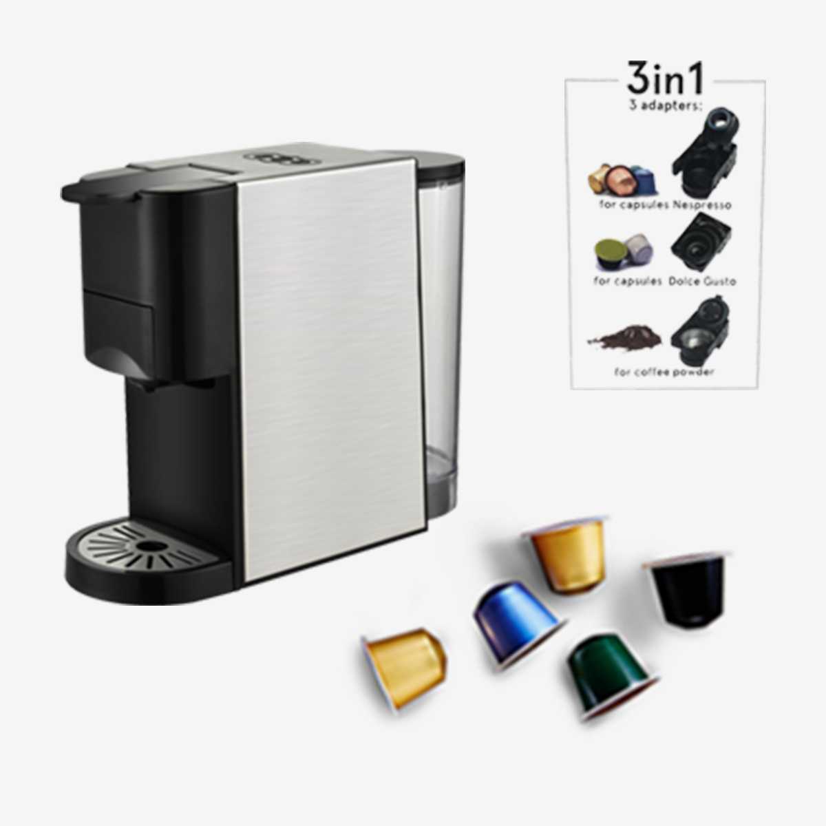 ماكينة صنع قهوة متعددة الكبسولات وقهوه الاسبرسو المطحونه ستانلس ستيل . 1450 وات وسعة 800 مل 19بار من شركة #![]()