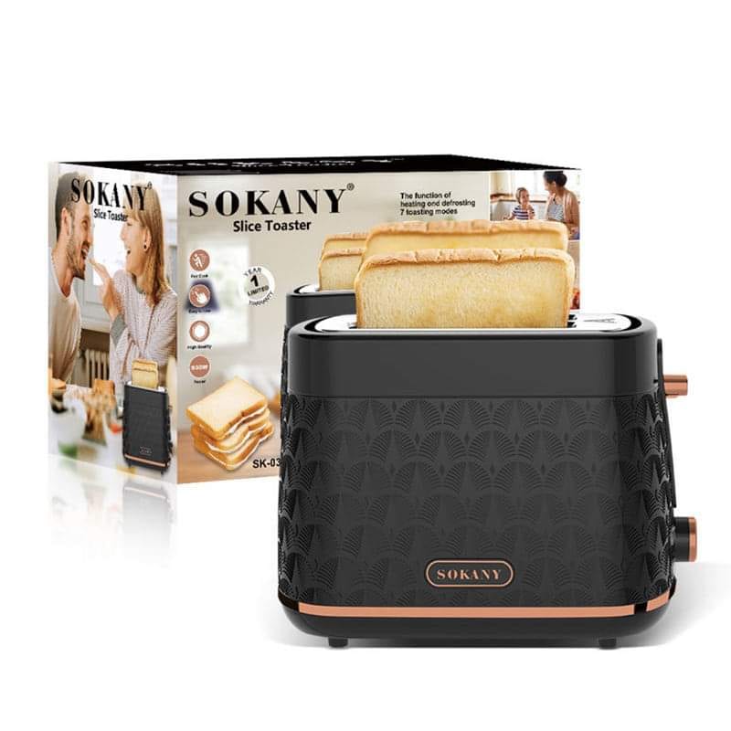 جهاز تحميص خبز التوست قطعتين من سوكاني Sokany بقوه 930 واط سلة حرارة داخلية ستانلس ستيل ضد الصدأ تحكم حراري