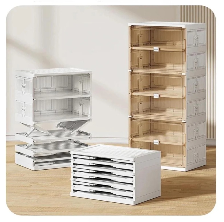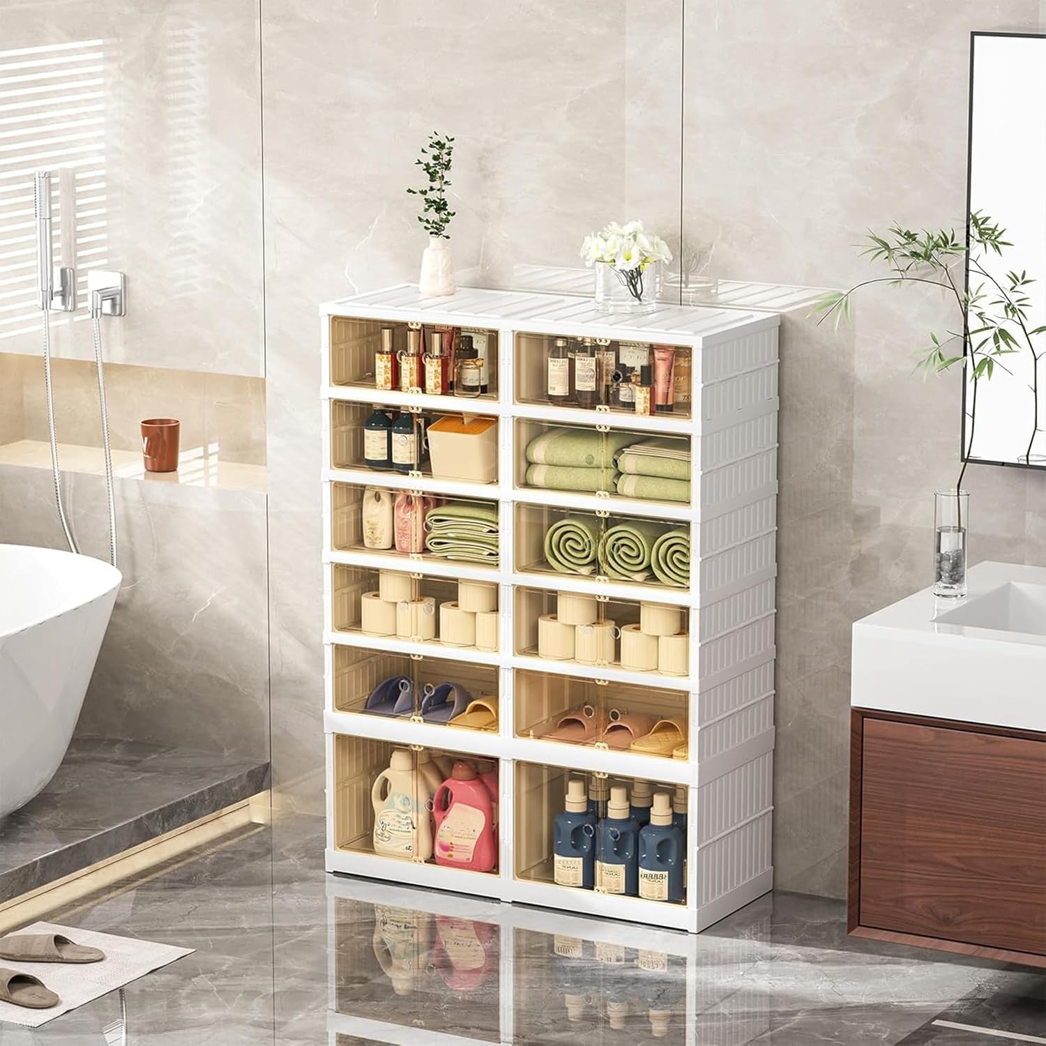 خزانة أحذية و حقائب قابلة للطي مكونة من 6 طبقات، تتسع لـ 12 زوجًا، صناديق أحذية بلاستيكية قابلة للطي مع أبواب، سهلة التجميع