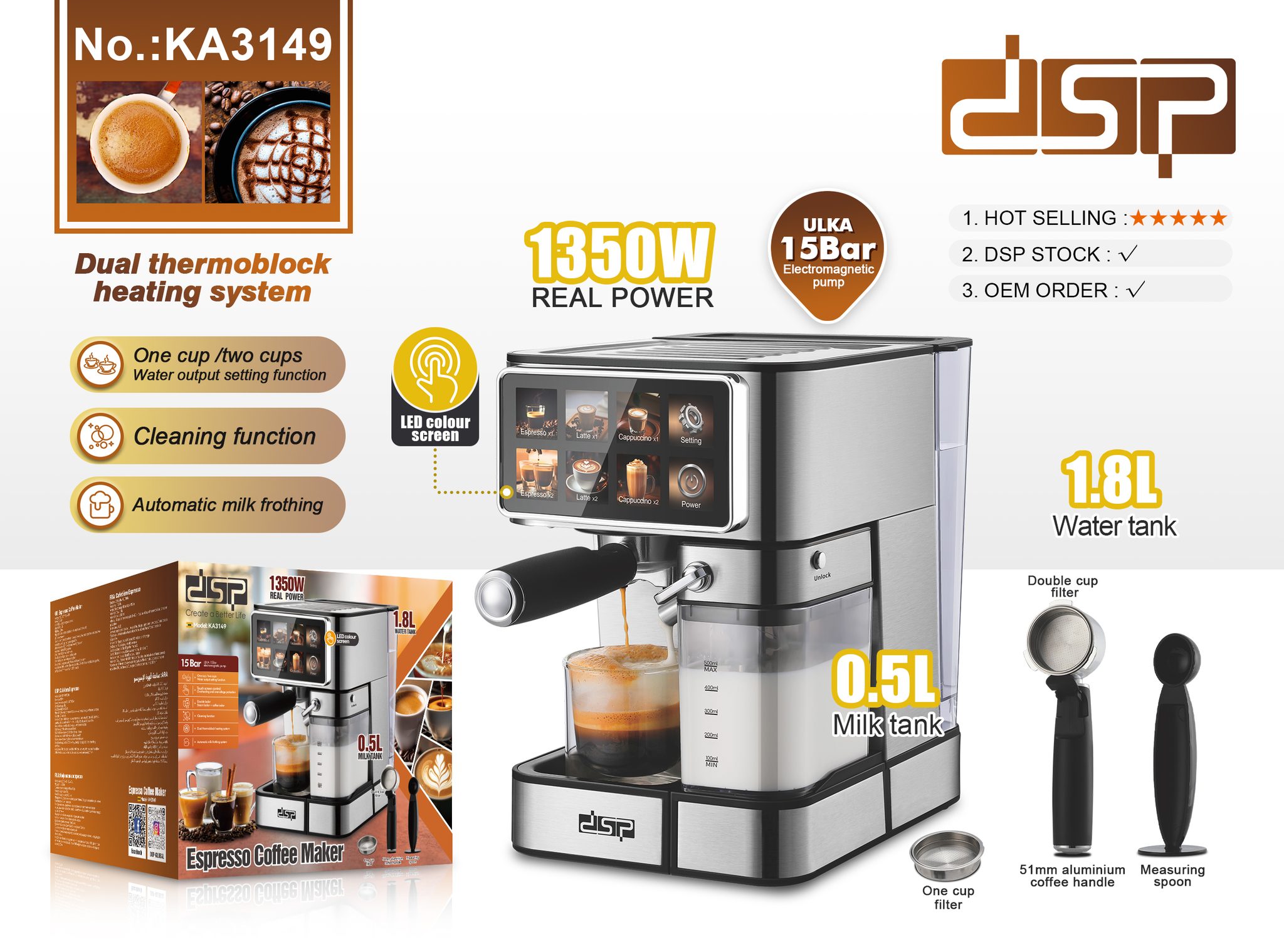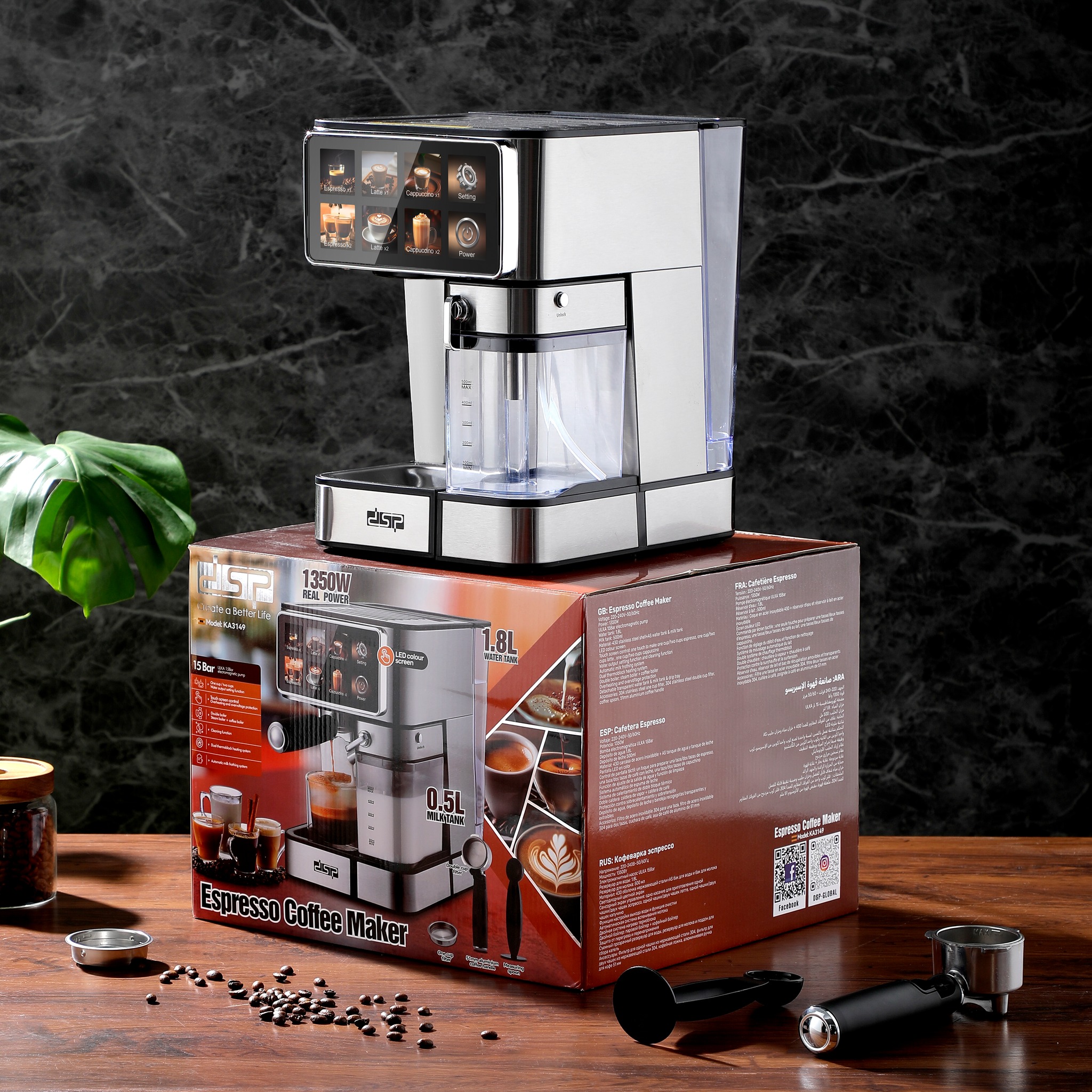 استمتع بأشهى أنواع القهوة في منزلك بلمسة واحدة فقط مع ماكينة الإسبريسو Full Touch المزودة بشاشة ملونة ذكية وسهلة الاستخدام 💫