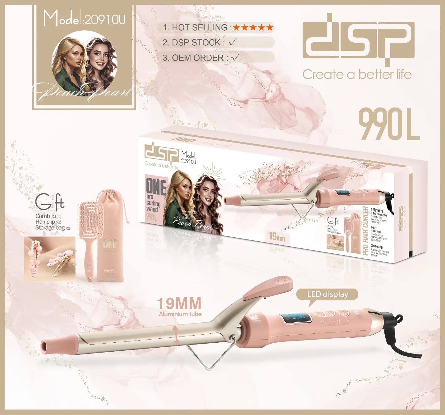 فير الشعر من ماركة DSP باللون الزهر بقوة 990 فهرنهايت