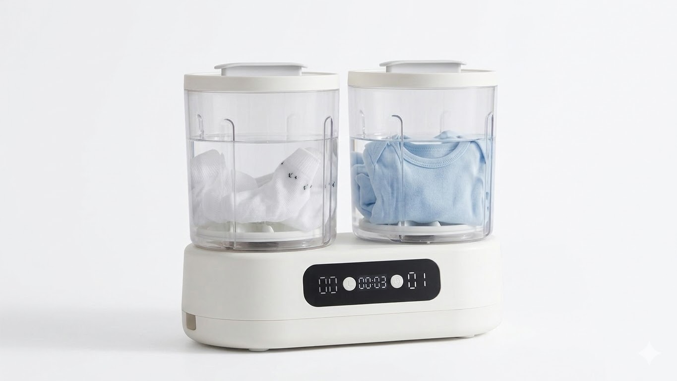 غسالة ملابس داخلية و المكياج صغيرة محمولة ذات حوضين تعمل بشكل تلقائي بالكامل، كوب غسيل للملابس الداخلية والجوارب