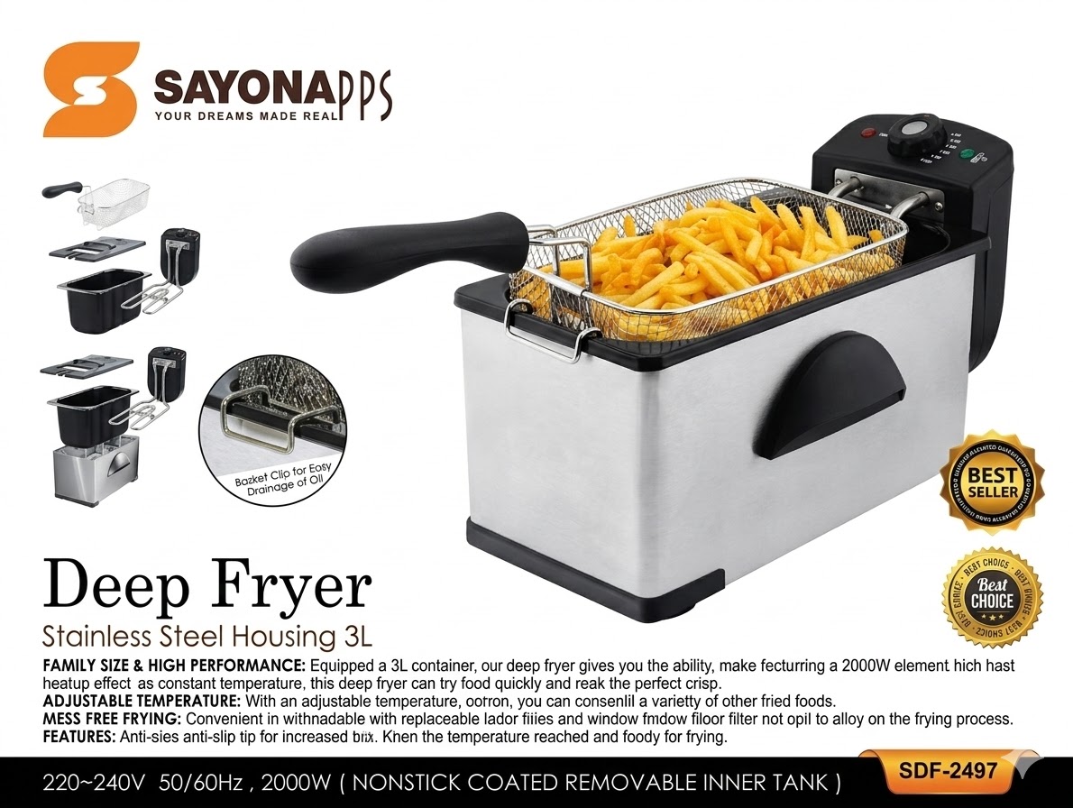قلاية زيت كهربائية سايونا ستيل 3 لتر مناسب لكل العائلات