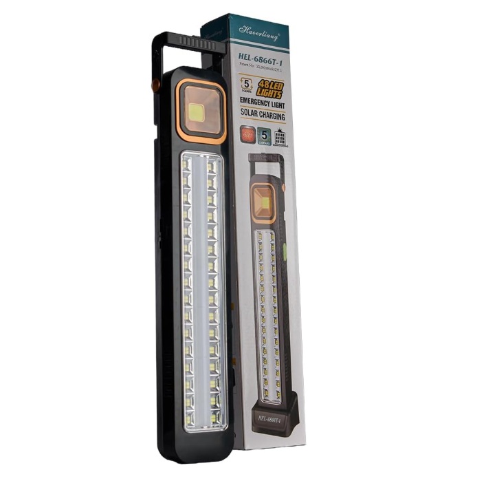 مصباح الطوارئ بالطاقة الشمسية HEL-6866T-1 بقدرة 45 واط بخمس تروس هنا ليكون مصدر موثوق للضوء في الظروف القاسية من نجفة شوب. يهدف هذا المصباح الذي يعمل بالطاقة الشمسية إلى توفير الإضاءة أثناء انقطاع التيار الكهربائي وحالات الطوارئ؛ فهو يضمن أنك لن تترك أبدًا في الظلام. إنه خيار مرن للرحلات الخارجية ومستلزمات الطوارئ لأنه صغير ومحمول. يمنحك مصباح الطوارئ الشمسي راحة البال التي تأتي من وجود مصدر ضوء يمكن الاعتماد عليه تحت تصرفك. نقدم لك مصباح الطوارئ الشمسي – شريان حياتك أثناء انقطاع التيار الكهربائي والمواقف غير المتوقعة. استمتع بضمان وجود مصدر ضوء موثوق به في متناول يدك، مما يضمن السلامة والراحة عندما تكون في أمس الحاجة إليه. استمتع بإضاءة صديقة للبيئة مع التصميم الذي يعمل بالطاقة الشمسية. استغل طاقة الشمس لشحن هذا الضوء، مما يوفر حلاً مستدامًا وموفر للطاقة لحالات الطوارئ. مصمم ليكون رفيقك المفضل، مصباح الطوارئ هذا صغير الحجم وسهل الحمل، مما يجعله مثاليًا لرحلات التخييم والمغامرات الخارجية والاحتفاظ به في مجموعة الطوارئ الخاصة بك. يضيء الظلام مع التوهج القوي لمصباح الطوارئ هذا. تضمن الإضاءة الساطعة رؤية واضحة، مما يخلق بيئة آمنة حتى أثناء انقطاع التيار الكهربائي. مع بطارية موثوقة وشحن شمسي فعال، يوفر مصباح الطوارئ هذا تشغيلًا ممتدًا مما يمنحك ساعات من الإضاءة المستمرة عند الحاجة. إضاءة LED مع 48 لمبة لإضاءة ساطعة. يتميز بمفتاح نقر بسيط لسهولة التشغيل.