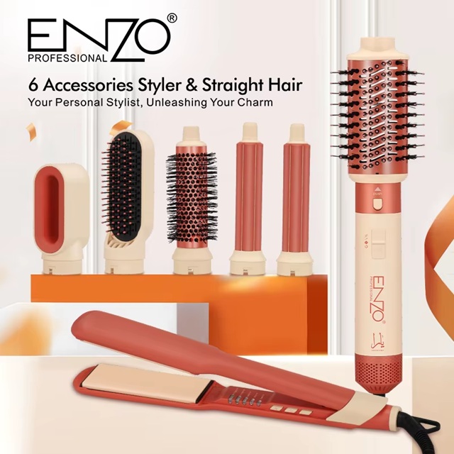 بكج السشوار 7 في 1 من يارا اينزو الجديد باللون البرتقالي و البيج
